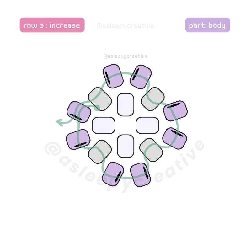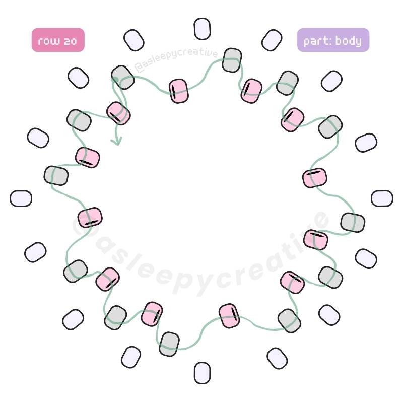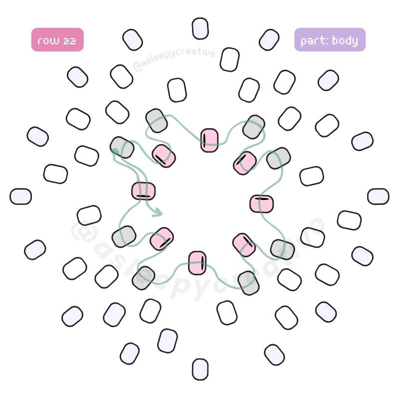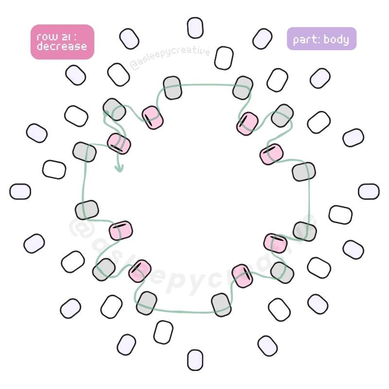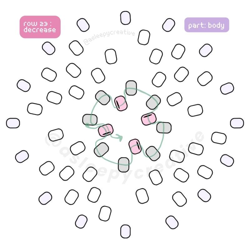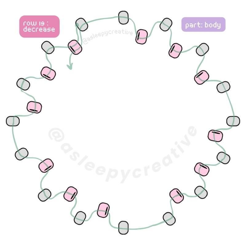 - This decrease can not be stacked on top of the previous increases because of the odd number of rows. Just decrease where you see fit!