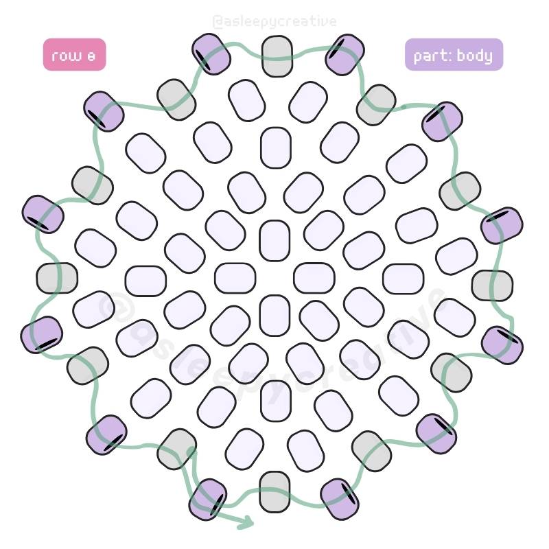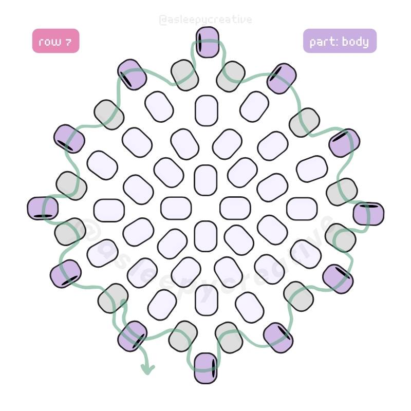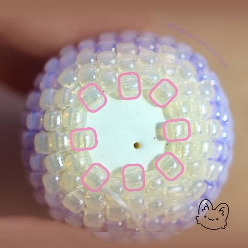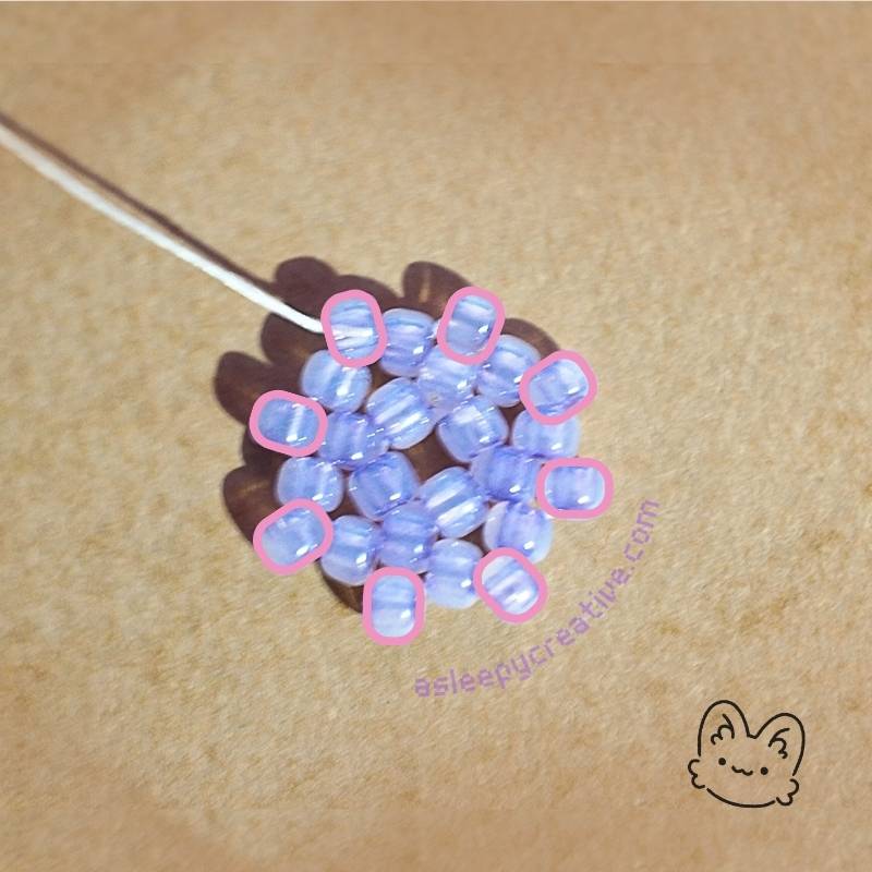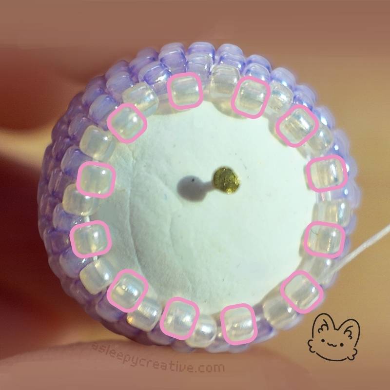 Another round just like the last one (row 7) with 12 beads to add. You’ve got this rhythm down now! Work through all positions using the same pattern.