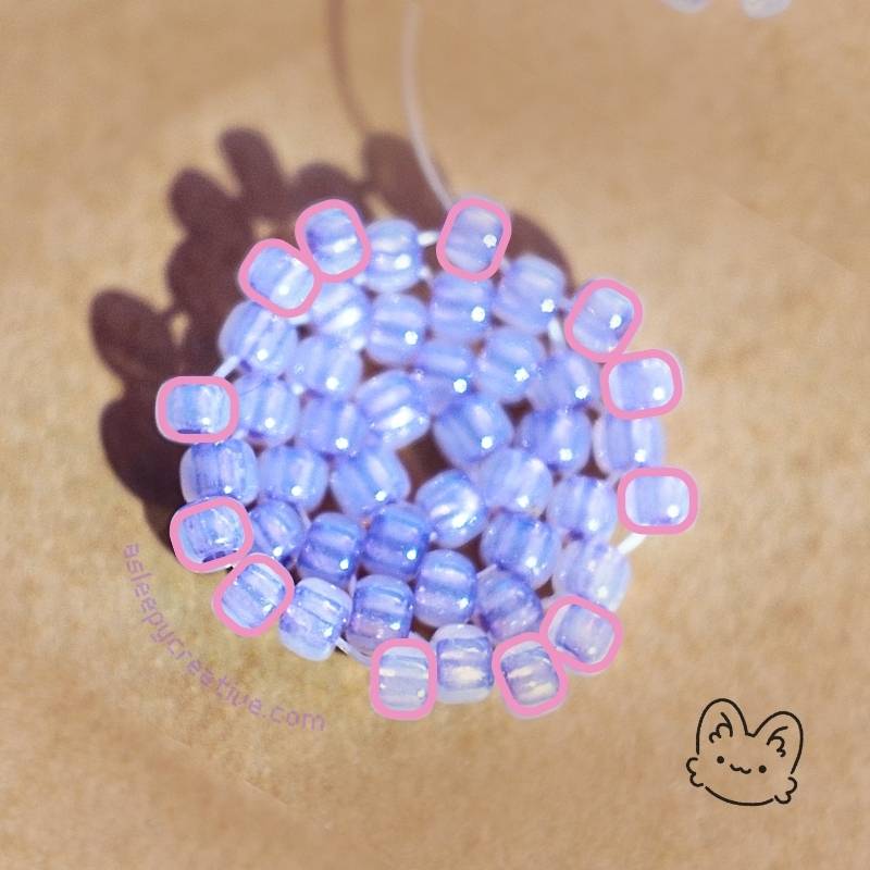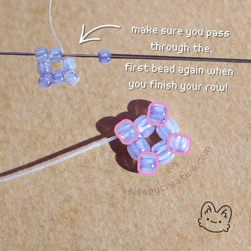 - Again and as always, don’t forget to end by passing through the first bead you added during the row!