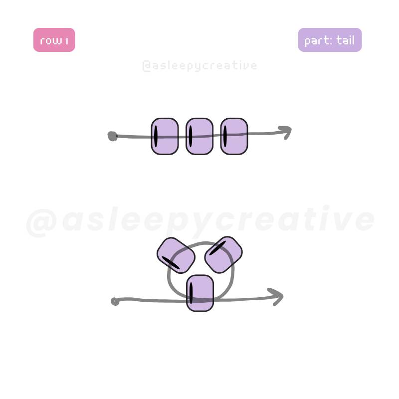 I’m using 2 colors: purple, and off white. You can use the colors of your choice! - x2 3mm black beads (eyes)