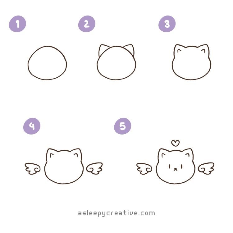 This little cat drawing is honestly one of my favorites for beginners. It’s basically just a simple cat face, but adding tiny wings makes it feel magical and special. Perfect for decorating notes or doodling in your planner!