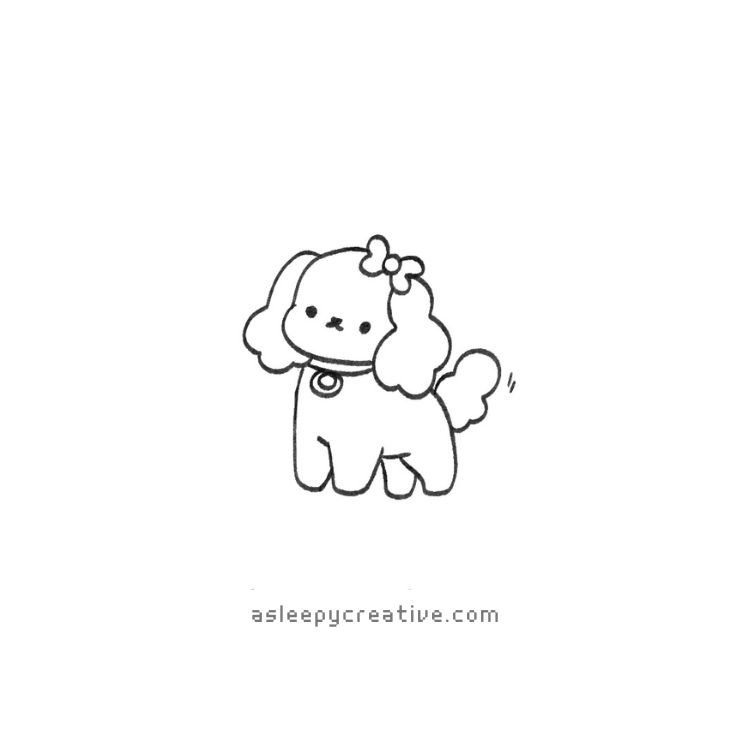 If you love dogs, this chibi puppy is going to be your new go-to doodle. The chubby body and tiny legs make it impossibly cute, and that little bow? Well – of course you can remove it if your pup is a boy ♥