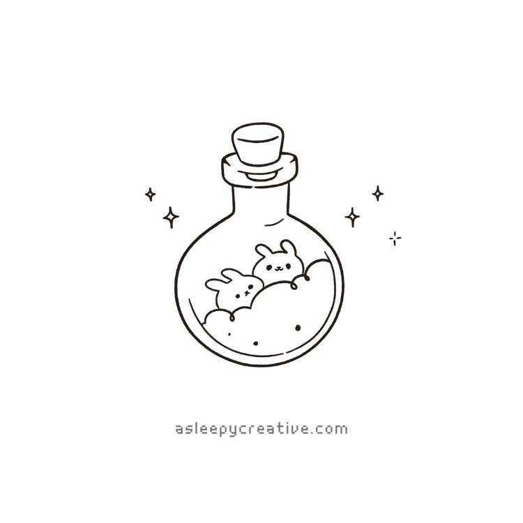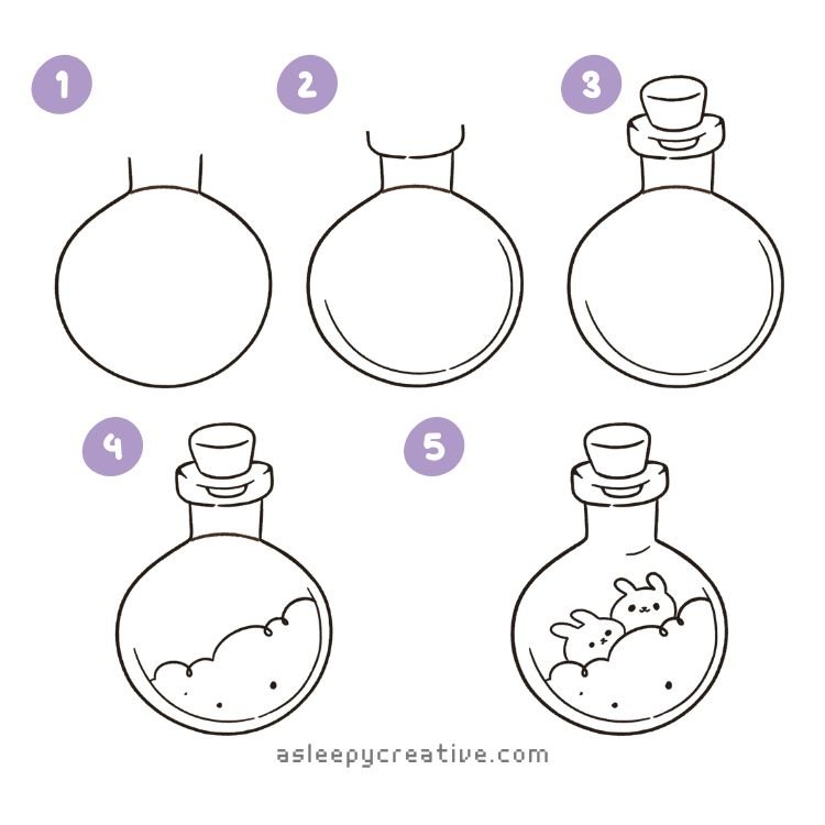 It combines simple shapes (the bottle) with tiny details (the bunnies) to create something that looks way more impressive than it actually is to draw. You can put anything in the bottle – stars, hearts, tiny cats, whatever you want!