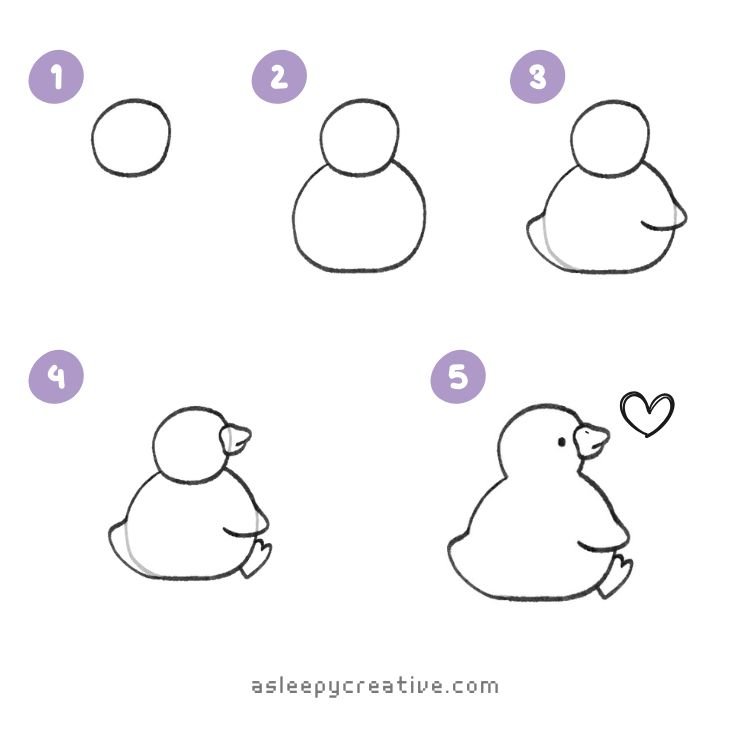 - Simple body shapes: Basic circles and ovals make up most cute drawings