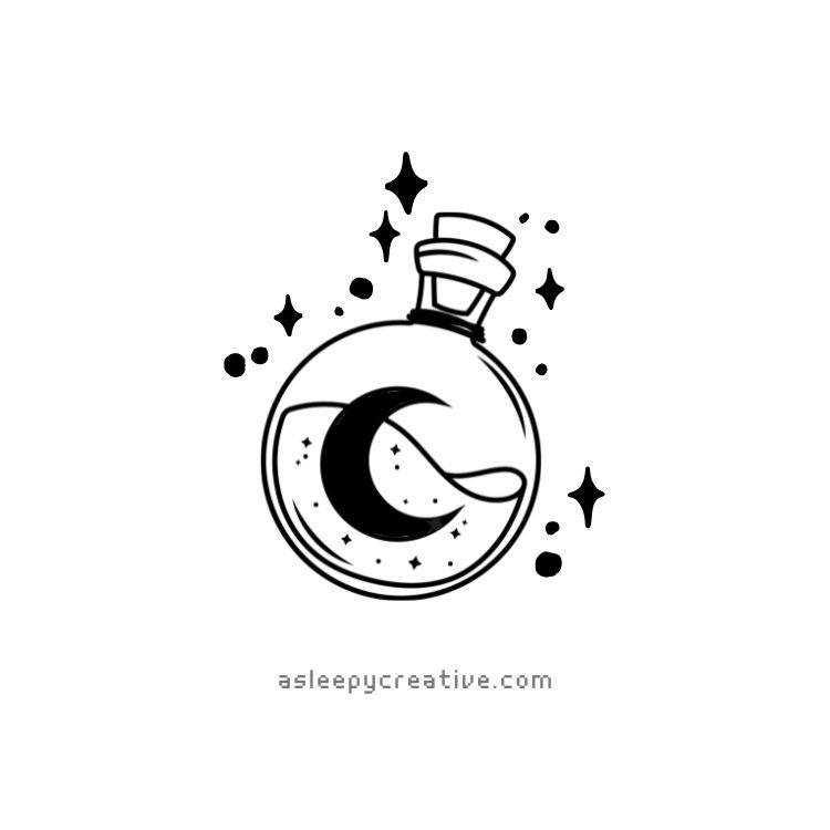 And the last potion for today, a moon potion! When I think about potions, it makes me imagine tons of stories that I make up in my head and helps me escape.