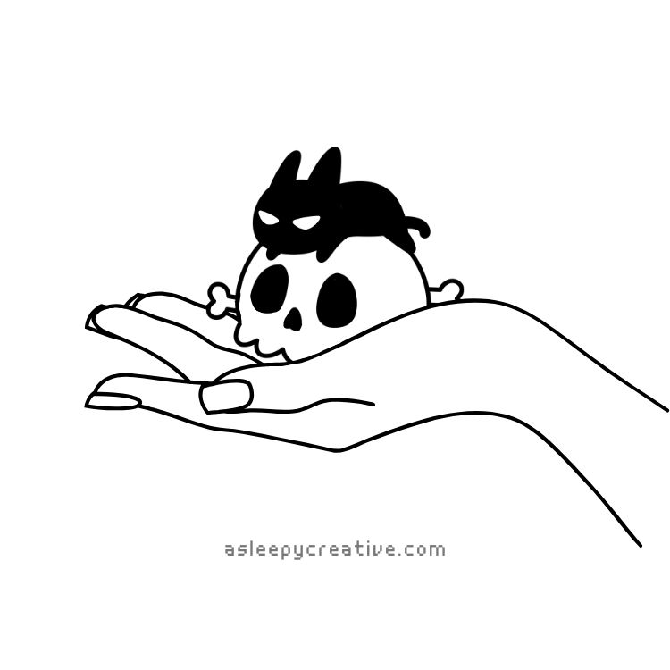 And last one for the dark themed cats – a cat and a skull (skulls make any drawing instantly a little more dark, doesn’t it?)