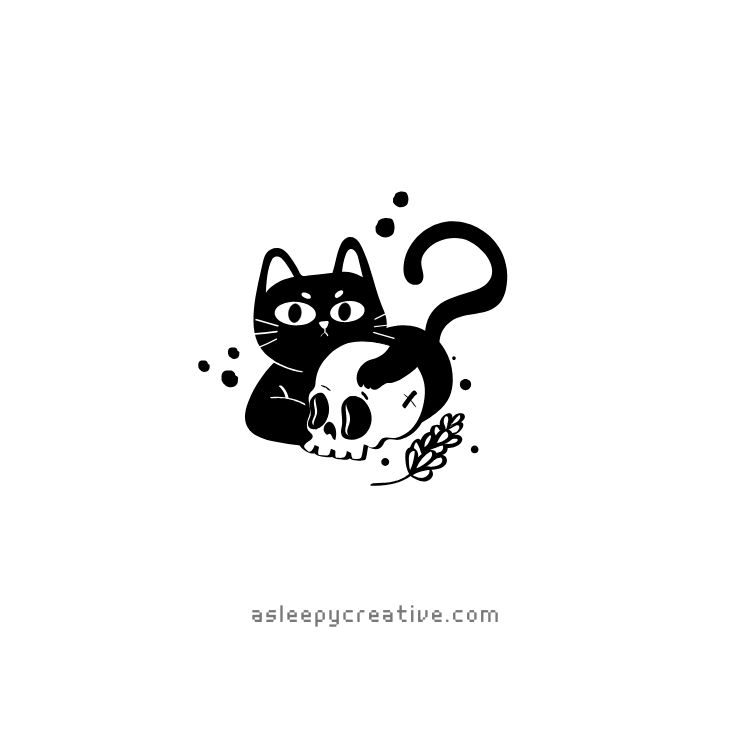 Here’s a witchy cat for cats lovers. Coupled with a skull, it immediately has a dark tint to it, doesn’t it? If you want more cute cats, I have a couple of additional cats for this dark themed collection just below.