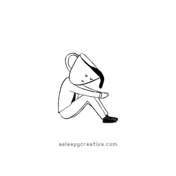 Representing tears with liquid pouring from a little mug. and the mug is sad, obviously.
