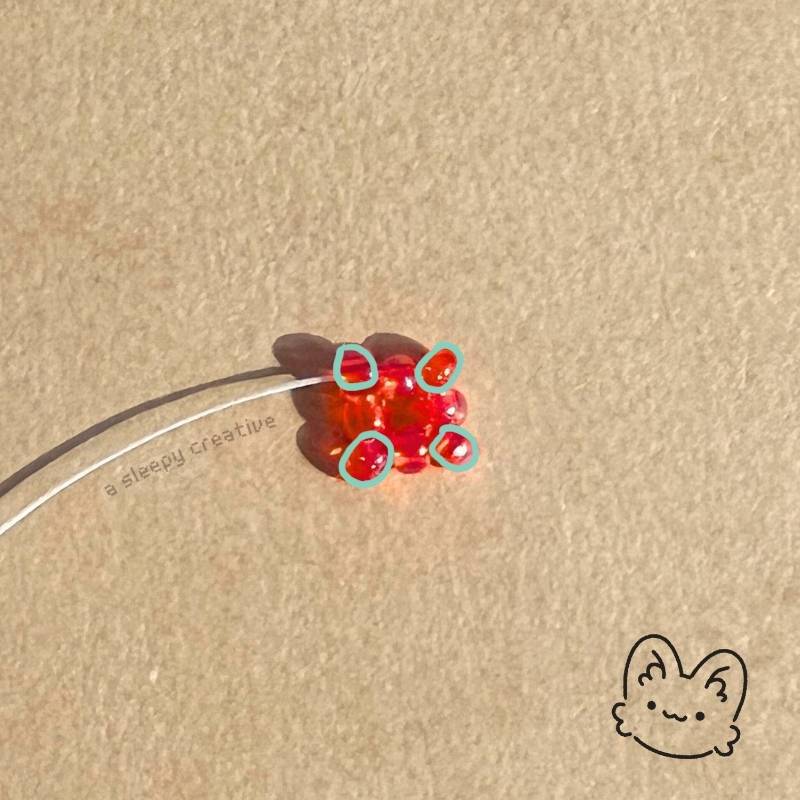 Note: it’s important to always end by passing through the first bead added in the round you’re working on.