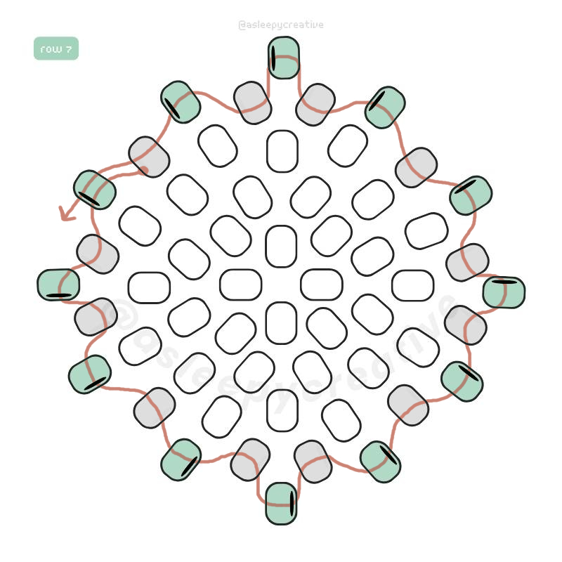 And the same goes for this row! Add one bead in between each bead of the previous row, counting 12 beads total for this row as well.