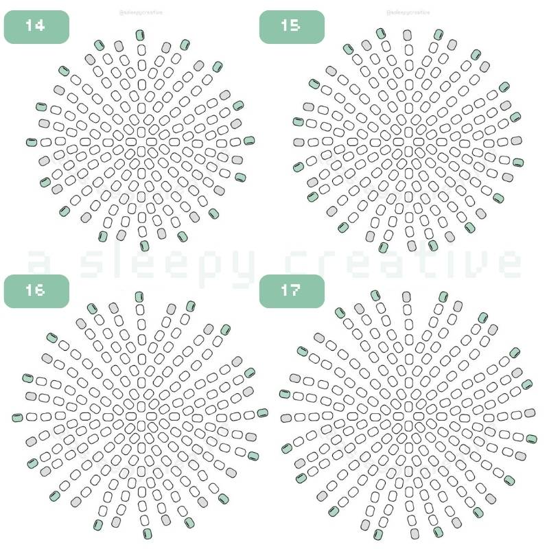 If you have more space at this point, it probably means that either your beads were smaller, or that your 16mm bead was a bit bigger. It’s okay though, you can add additional rows, even though it is better to add them between rows 10 and 17.