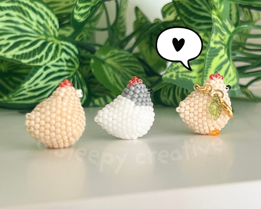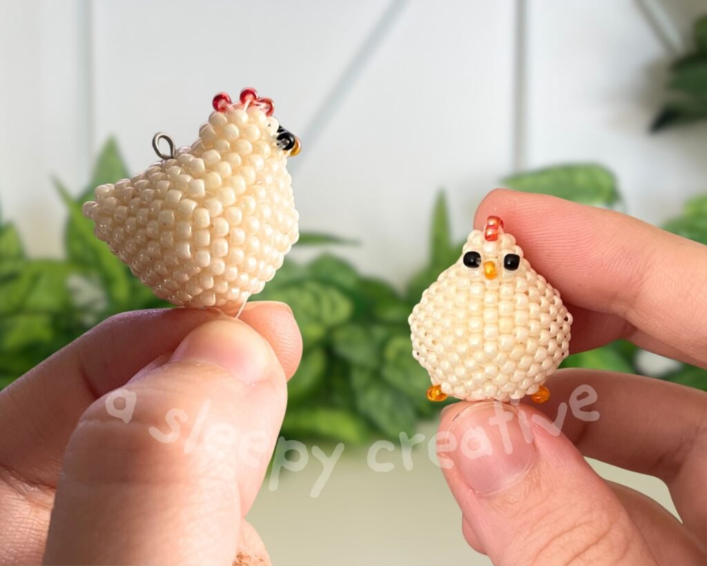 So my beaded chicken has attracted a lot of eyes, and I wanted to share a free version of it. If you take your time and follow the steps, you’ll be able to make little chickens like mine! But if you want the convenience of having a step by step pattern, you should check out the chicken pattern on Etsy.