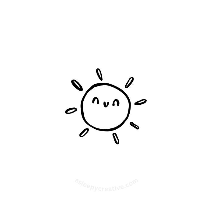 I was sketching in the morning and saw the sky looking all soft and glowy, and just had to draw it. It’s actually a super easy sun drawing idea that people overlook. It literally takes a few seconds, and is still cute.